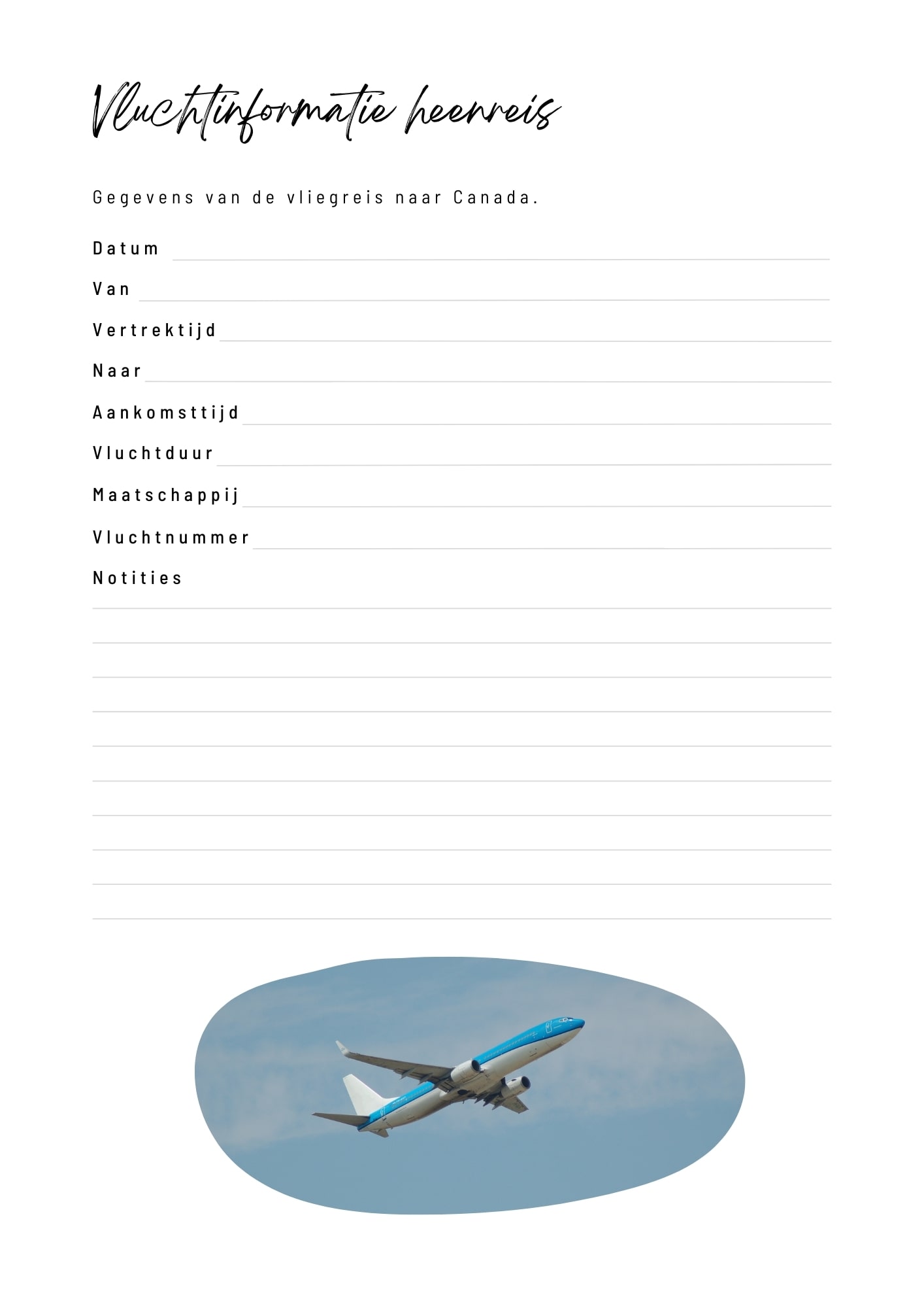 - Twee pagina’s om je vluchtgegevens in te vullen (een voor de heenreis en een voor de terugreis)
