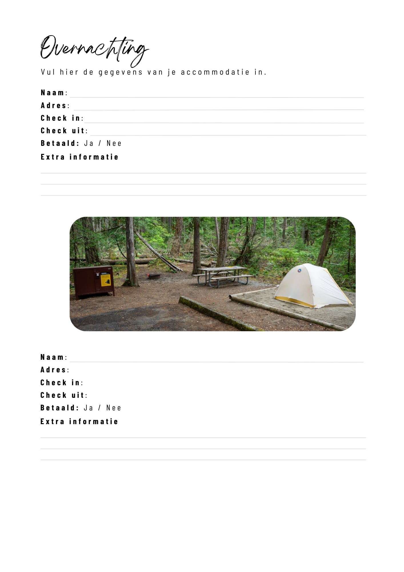 - Een pagina om de gegevens van je huurauto of – camper in te vullen