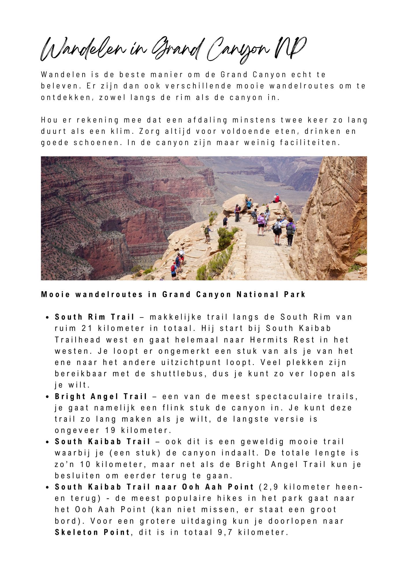- Pagina 3 bevat een overzicht van de mooiste bezienswaardigheden en de leukste dingen om te doen in de Grand Canyon.