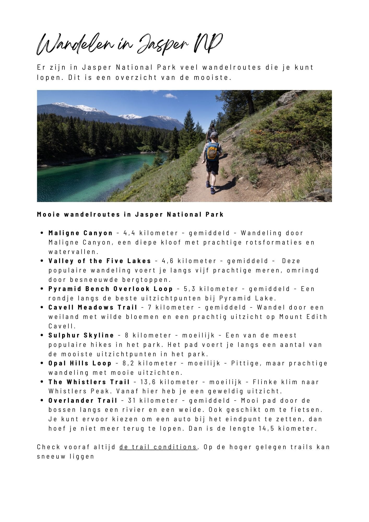 Maak je Canada roadbook compleet met deze Jasper National Park Bouwsteen! Deze mini-reisgids bestaat uit vijf pagina’s: