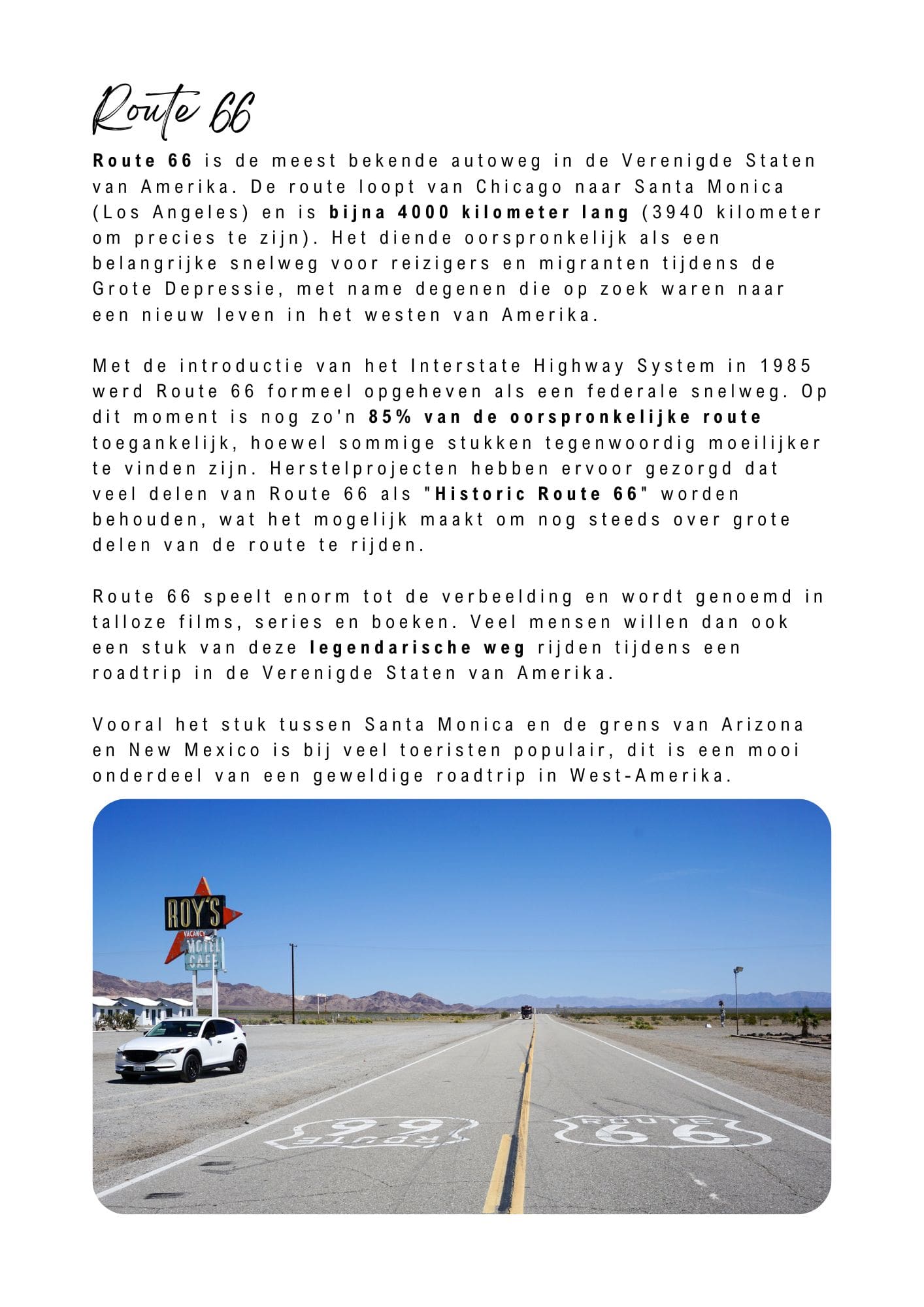 Je krijgt twee verschillende PDF’s, eentje die Route 66 van Californië naar Arizona beschrijft en een die Route 66 van Arizona naar Californië beschrijft.